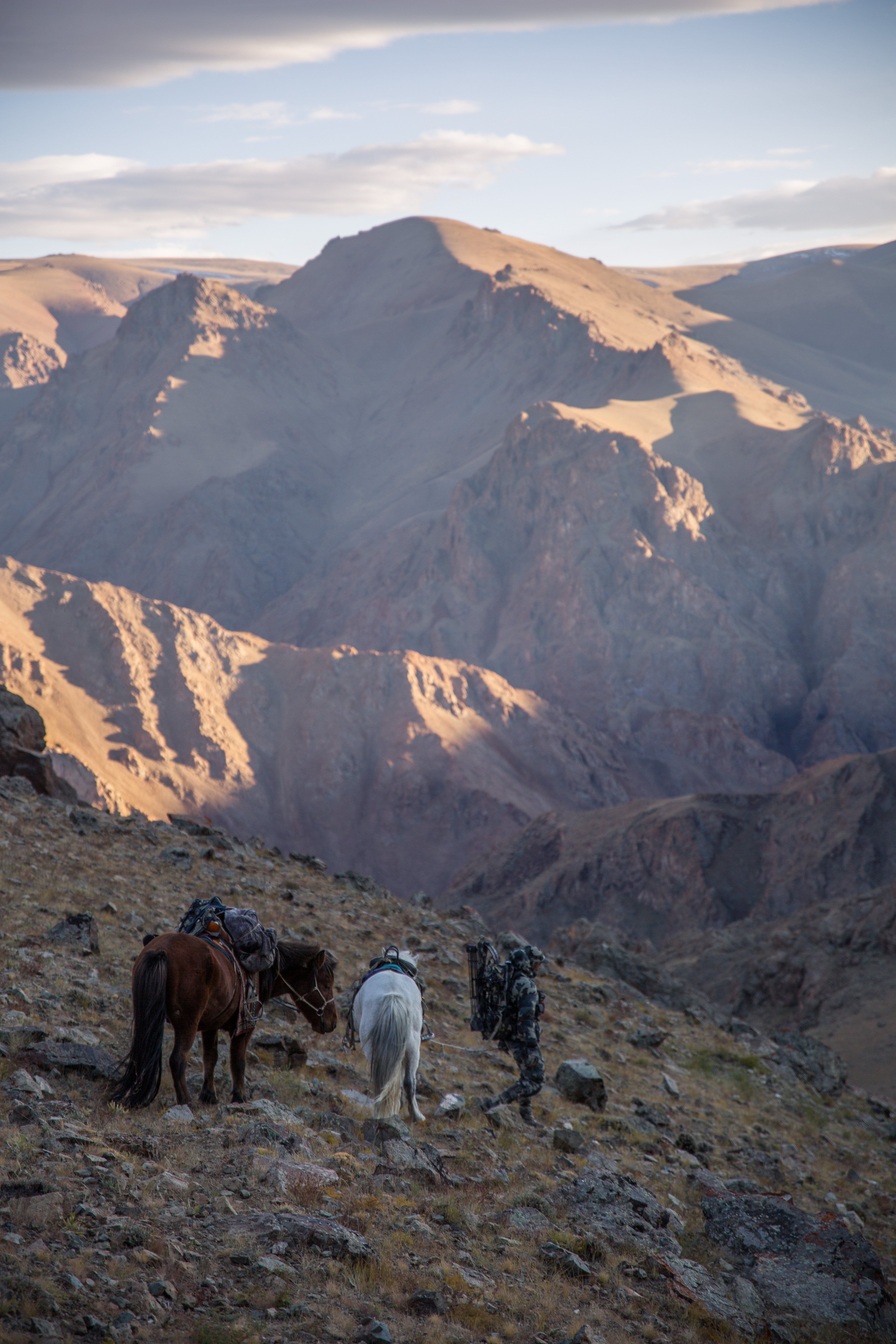 It takes us 4 hours to get above the group of billies that we saw bed down earlier this morning. We are at 3500 meters, after a 700 meter elevation gain straight up. Air is thin and wind is blowing, thermals though are constant and hitting us on the face. At this point it is only Otgonshar and I, Galkhu couldn’t keep up with us. We don’t have much time before they change as we see the sun slowly going down.